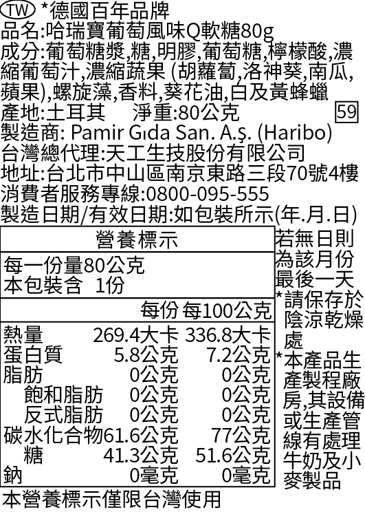 80G哈瑞寶Q 軟糖葡萄味