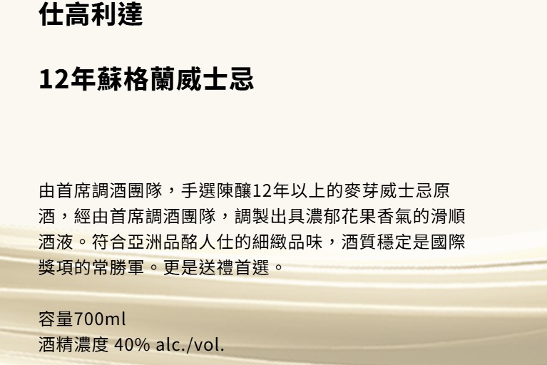1L仕高12年威士忌藍色